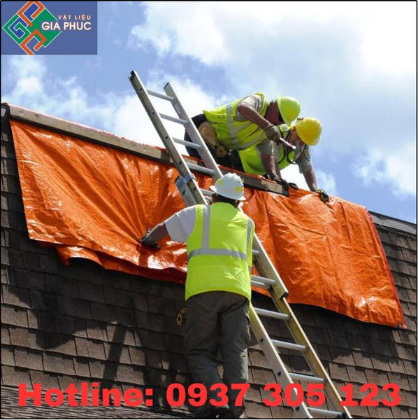 - Bạt xanh cam dùng che mưa che nắng.