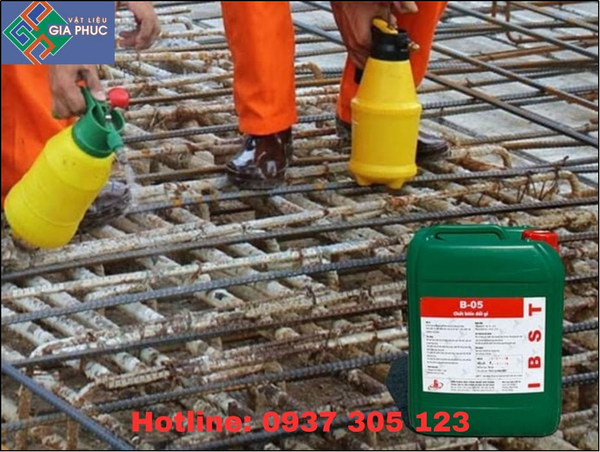 - B05 tẩy sạch bề mặt kim loại bỉ gỉ vàng do oxy hóa, tẩy sạch cốt thép trong thời gian thi công lắp dựng cốt thép xây dựng bị gỉ mà chưa kịp đổ bê tông.