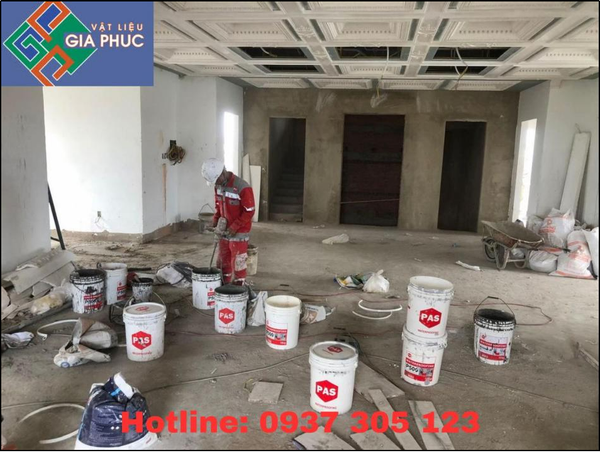 - Trộn 1 kg PAS P500 với 0,6 kg xi măng theo tỷ lệ 1 : 0,6 bằng cần trộn điện tốc độ cao cho đến khi hỗn hợp đồng nhất.