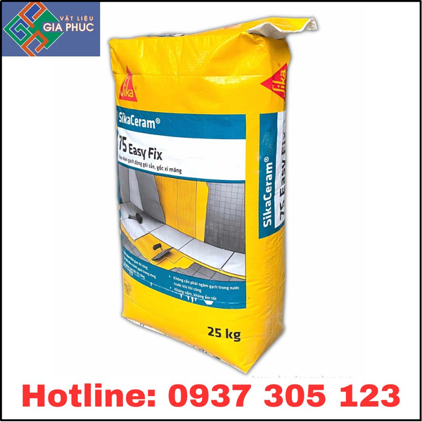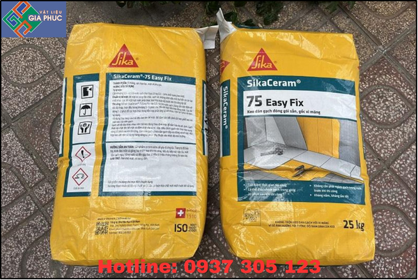 Sản phẩm SikaCeram 75 Easy Fix 25kg là keo dán gạch gốc xi măng, được đóng gói sẵn, dùng để dán gạch ceramic, gạch đồng chất (kích thước vừa và nhỏ) cho sàn và tường nội thất. Sản phẩm này có dạng bột màu xám, có thể dùng như một lớp keo mỏng hoặc dày.