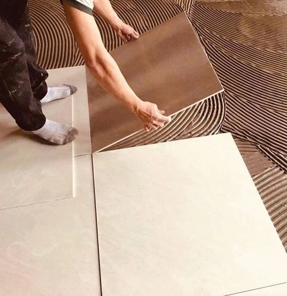 - Thi công với bay răng cưa cắt hình vuông cho gạch lớn.