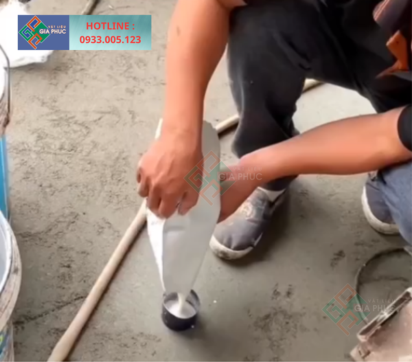 Pha theo tỷ lệ khuyến nghị của nhà sản xuất (thường từ 5–10% so với khối lượng xi măng).